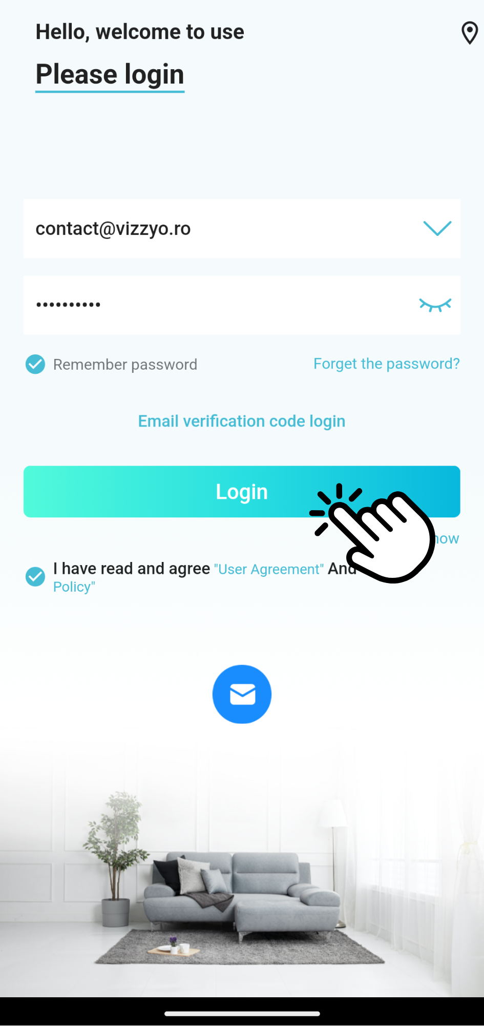 După configurarea completă în aplicația mobilă, te poți conecta de pe computer pentru a urmări imaginile live.