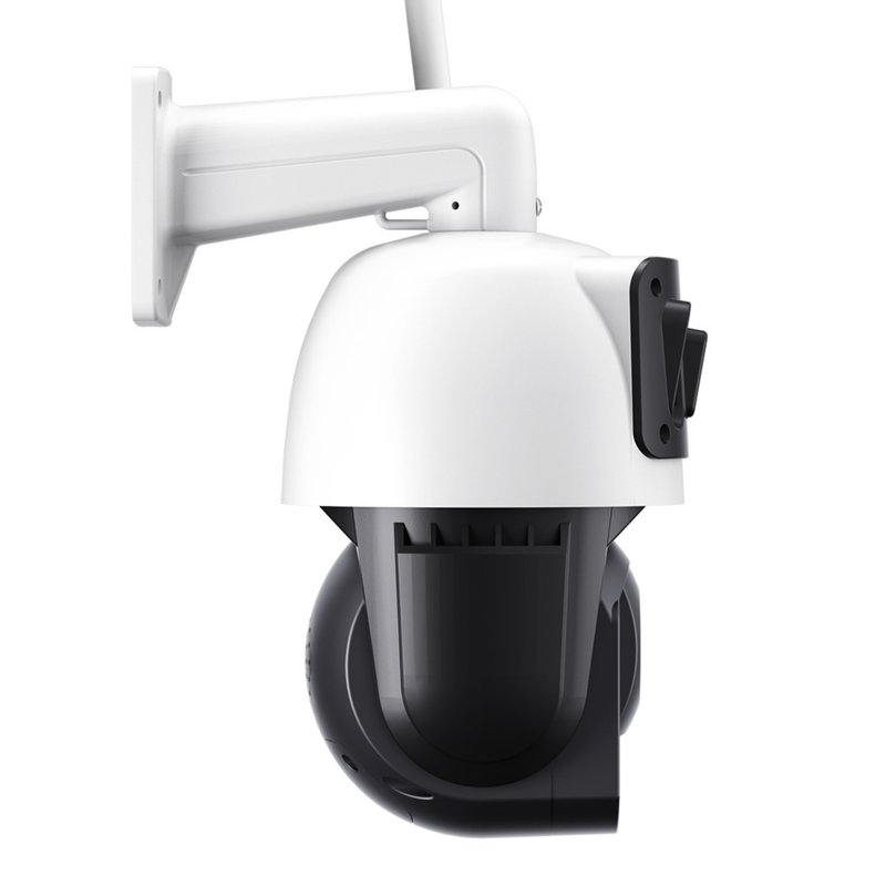 Camera PTZ de jos se rotește până la 355° pe orizontală și 90° pe verticală, astfel încât poți scana rapid perimetrul și poți verifica direct din aplicație orice punct care necesită atenție. În același timp, camera fixă de sus, cu lentilă 3.6 mm, păstrează permanent în cadru zona generală, fără să depinzi exclusiv de mișcarea camerei rotative.