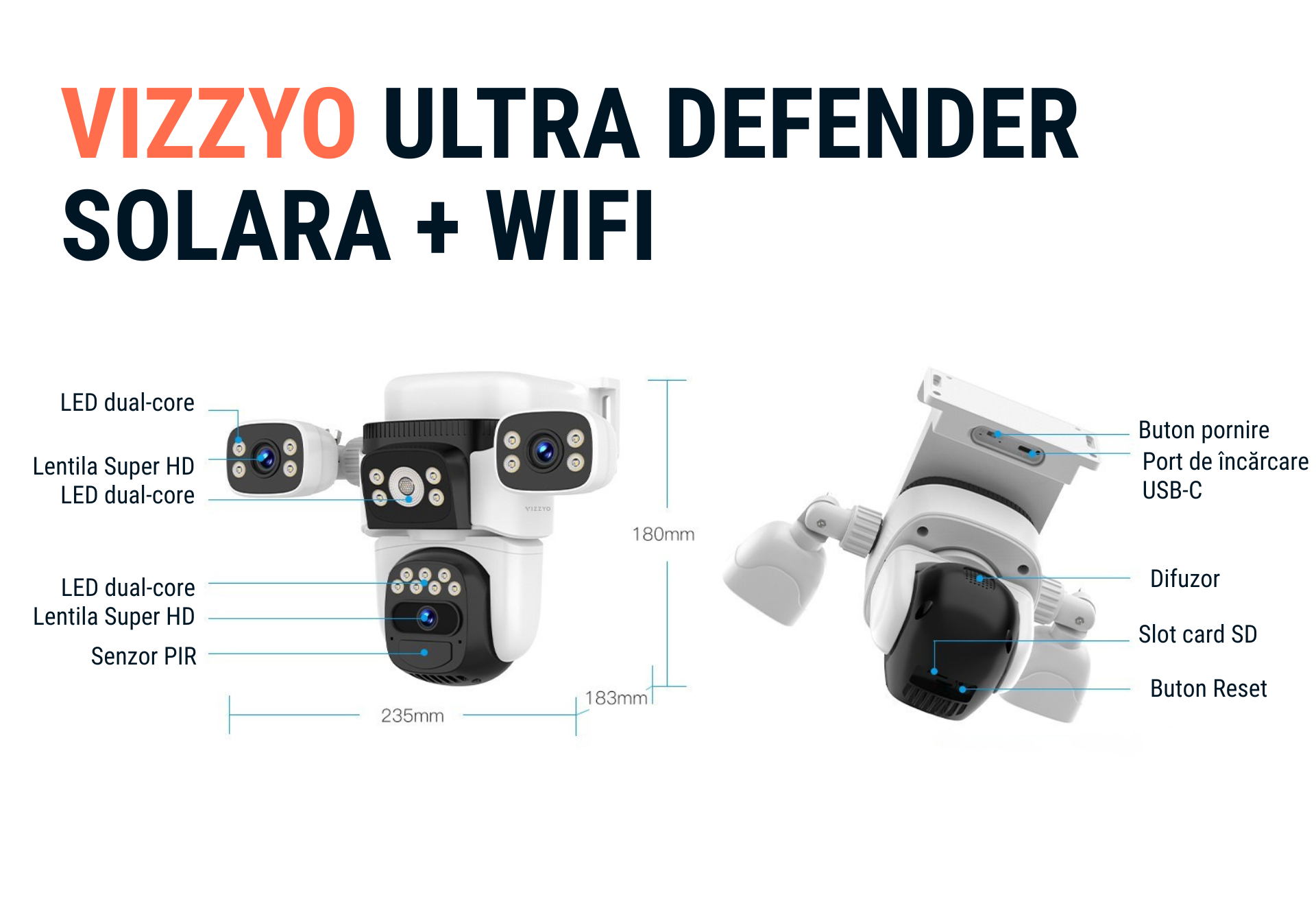 Această tehnologie face ca Vizzyo Ultra Defender Solară să fie ideală pentru monitorizarea intrărilor, curților și zonelor de acces, oferind un echilibru perfect între securitate, eficiență și consum redus de energie.