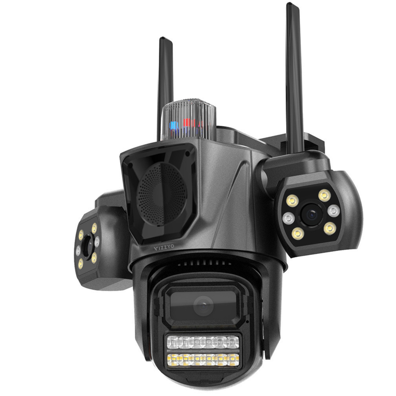 Vizzyo TriShield este o cameră de supraveghere WiFi triplă, creată pentru protecție completă și acoperire panoramică de 360°. Într-un singur corp primești 3 camere independente, astfel încât o singură unitate poate înlocui practic 3 camere separate, cu instalare mai simplă și mai puține cabluri.