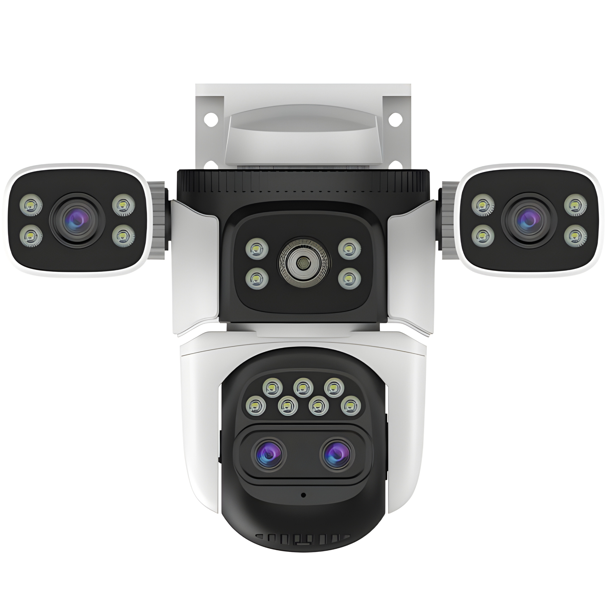 Cele trei camere independente, fiecare cu obiectiv Super HD, lucrează împreună pentru a surprinde o panoramă completă și detaliată. Lentilele ultra-wide de 4 mm cu diafragmă F2.0 extind câmpul vizual și oferă imagini luminoase chiar și în condiții de iluminare redusă – ideale pentru monitorizarea spațiilor mari, cum ar fi curți, parcări sau zone comerciale.