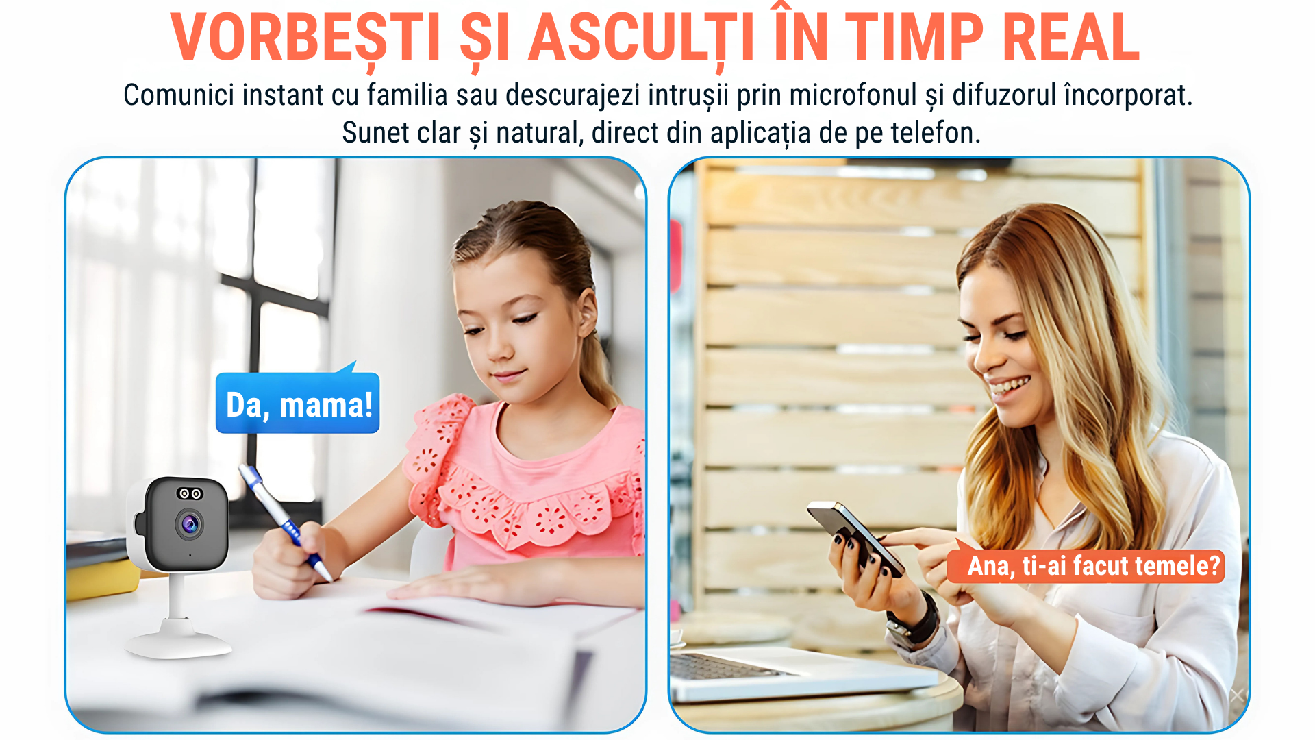 Siguranța familiei – vorbești în timp real cu copiii, bebelușii sau părinții vârstnici, fără a fi nevoie de alt dispozitiv.