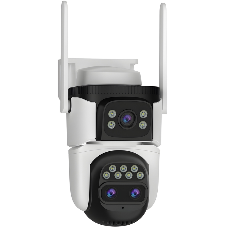 Cele două camere independente lucrează împreună pentru a oferi atât o imagine panoramică, cât și detalii de la distanță. Lentila ultra-wide de 4 mm cu diafragmă F2.0 surprinde un câmp vizual larg și imagini luminoase chiar și în condiții de iluminare redusă – ideală pentru monitorizarea curților, aleilor sau zonelor comerciale.