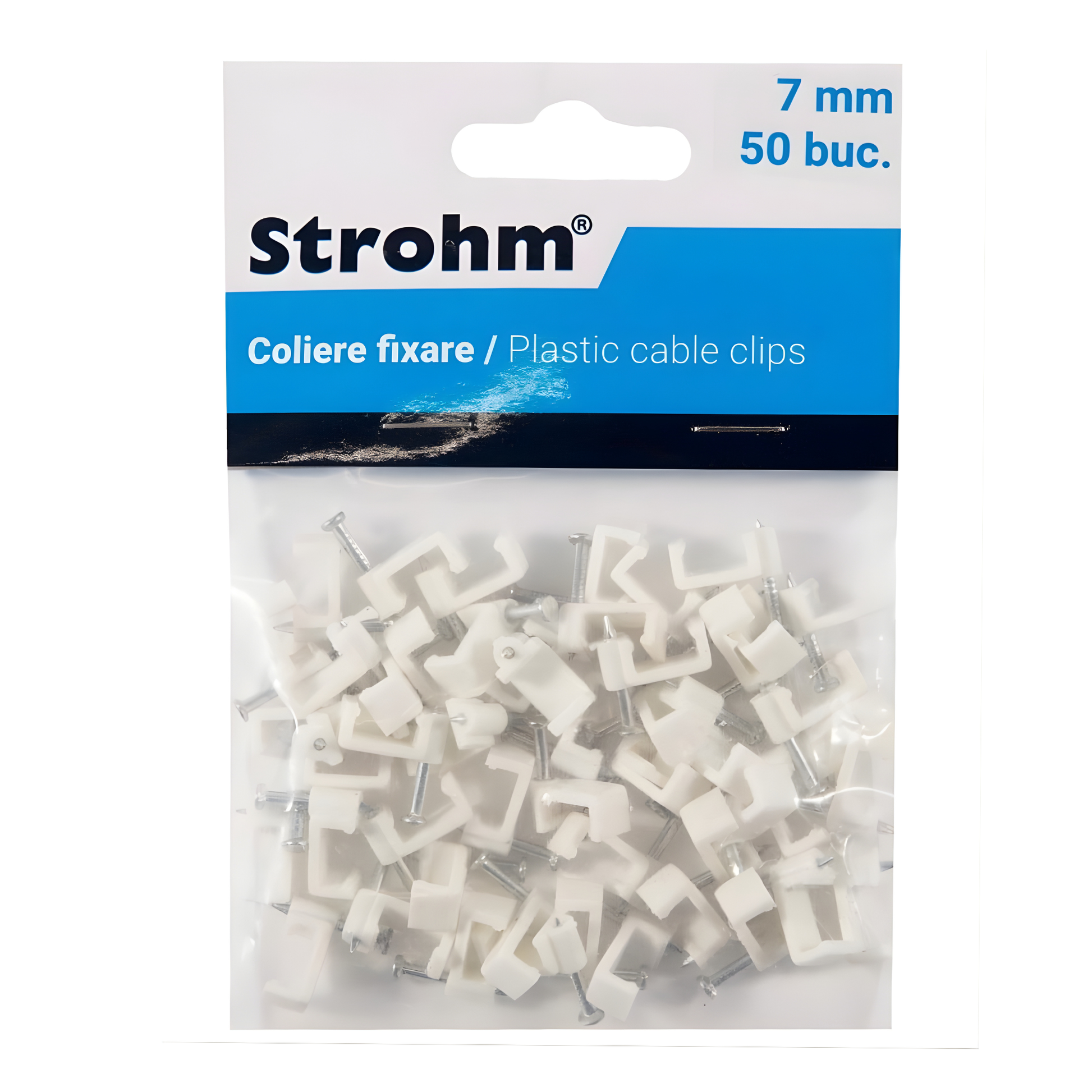 Cleme fixare cablu Strohm, 7 mm, albe, set 50 bucati